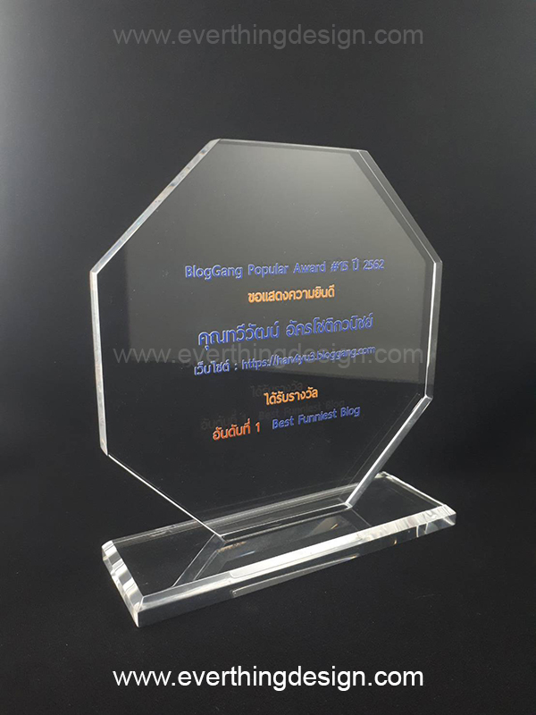 โล่รางวัลอะคริลิคแบบพิเศษ เป็นโล่รางวัลอะคริลิคที่สามารถสั่งผลิตได้ตามแบบลูกค้า โดยทำการขึ้นแบบใหม่ทั้งหมด โล่รางวัลอะคริลิคที่ออกมาจึงเป็นไปตามความต้องการ Album navigation